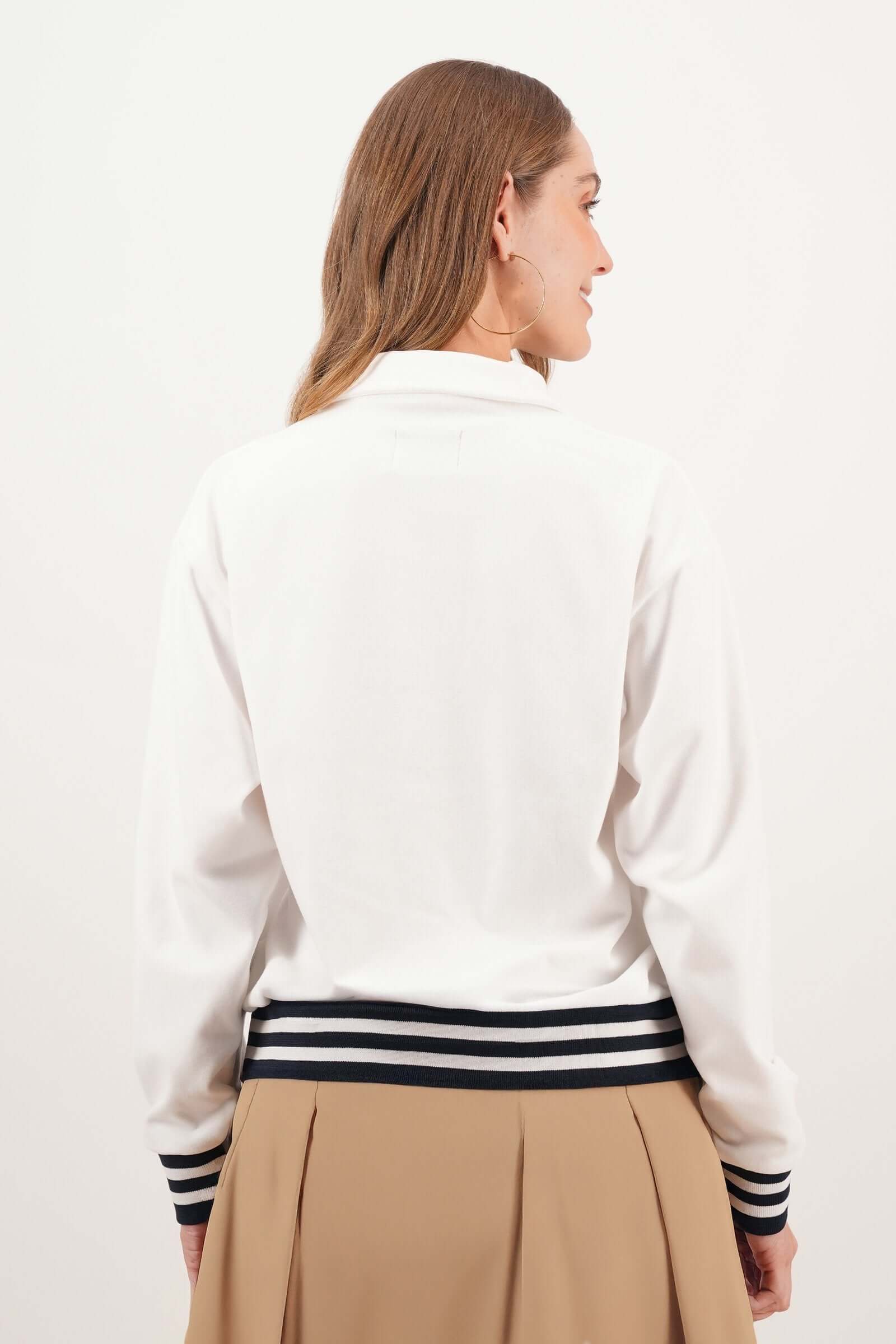 Buzo de dama básico amplia ideal para un look casual, combina comodidad, estilo sencillo y versatilidad en el día a día.